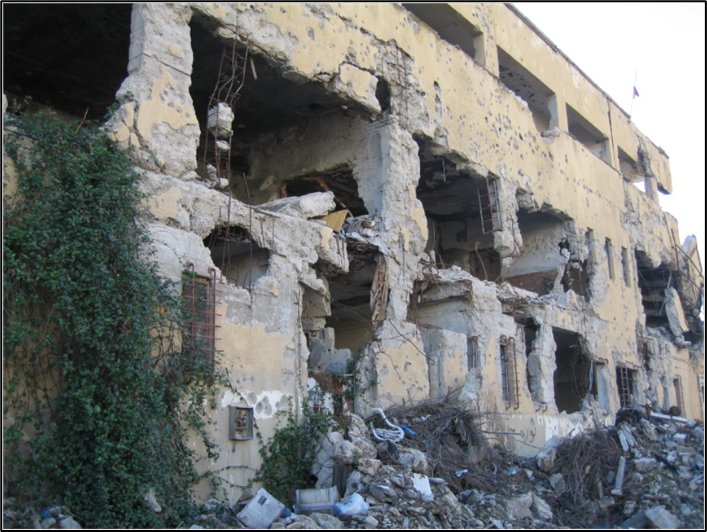 ▲ 이스라엘이 탱크 포격으로 파괴한 건물
